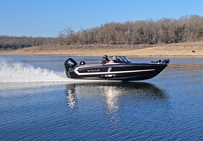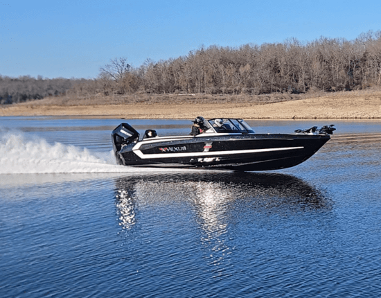 Optimized for multi-species fishing in larger freshwater bodies. Smoother, drier and quieter ride with predictable handling. Length 7.06 m / 23 ft 2 in Max power: 500 hp outboard Top speed: 75+ mph Awarded the NMMA Innovation Award for Fibreglass Fishing category